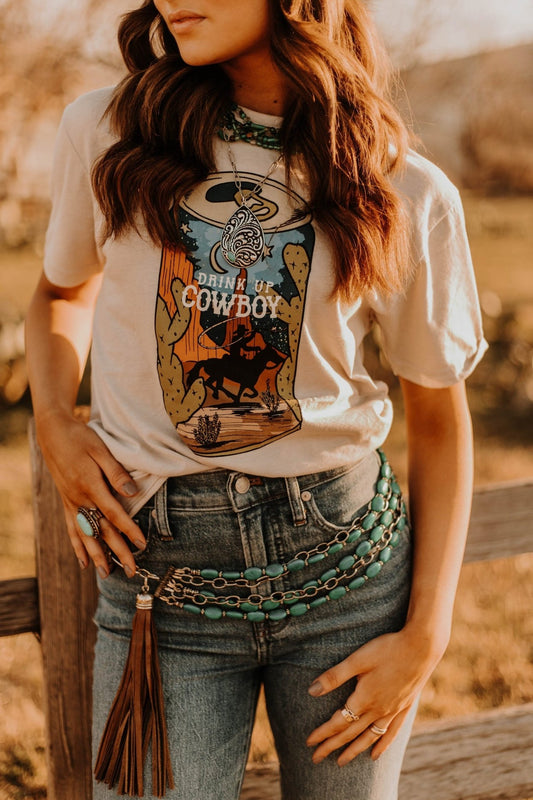 Regular price $16.00 USDRegular priceUnit price / per$32.99 USDSale price $16.00 USDDrink Up, Cowboy Graphic Tee