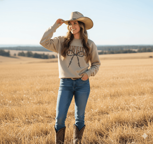 Regular price $20.00 USDRegular priceUnit price / perSale price $20.00 USDCowgirl Barbed Wire Bow Graphic Sweatshirt